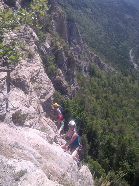 In extreme heat Martin Sibley, his two children Alex and Mathew and me suffered the heat to complete a south facing Via Ferrata and with the use of cable cars two higher Via Ferrata climbs were also completed. Our Canyoning trip was great fun, guided by a local guide who had as jumping and diving to complete the canyon which everybody enjoyed… Kayaking was short but good, with Stewart Wright and me paddling a short stretch of the Durance river and the trout fishing was so successful we all had two each, barbequed at the camp site.
