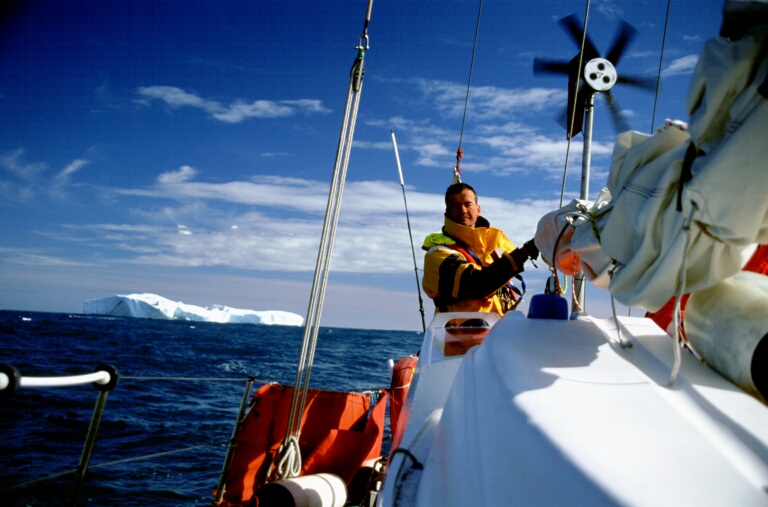 The climbers Peter Watson, Robert Jones, Stewart Wright and myself Steve Lodge (all over forty Eight) have a wealth of climbing experience between us with, success’s on mountains in most ranges in the world including, Huascaran (Peru 6700m), Huapasca (Peru 5800m) Chulu West (Nepal 6630m), Mt McKinley (Alaska 6195m) Khan Tengri (Tien Shan 7001M) and most major 4000m peaks in the Alps. Peter and I had sailed many times with Ron, with peter completing the transatlantic race the year before. Our last member Tim Broad (Under forty but very tall) is hard to categorize being neither, a hardened climber or a hardened sailor. He had experience in both and joined for the adventure side of this expedition. He was in fact a very fine sailor and a great climber.